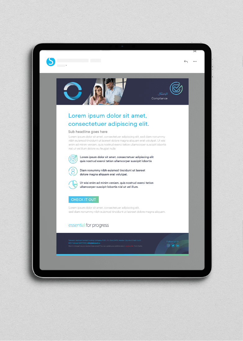 Mojo delivered a comprehensive brand refresh, reimagining Tabreed's narrative, evolving the logo system, crafting custom Arabic typography, and creating a unified ecosystem of visual assets. New elements such as progress lines and sustainability waves were introduced to symbolize express Tabreed's commitment to continuous innovation and environmental stewardship.