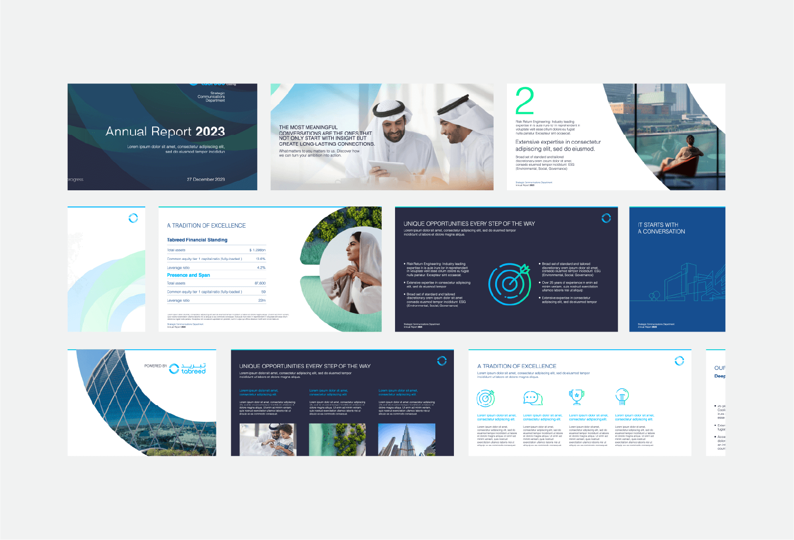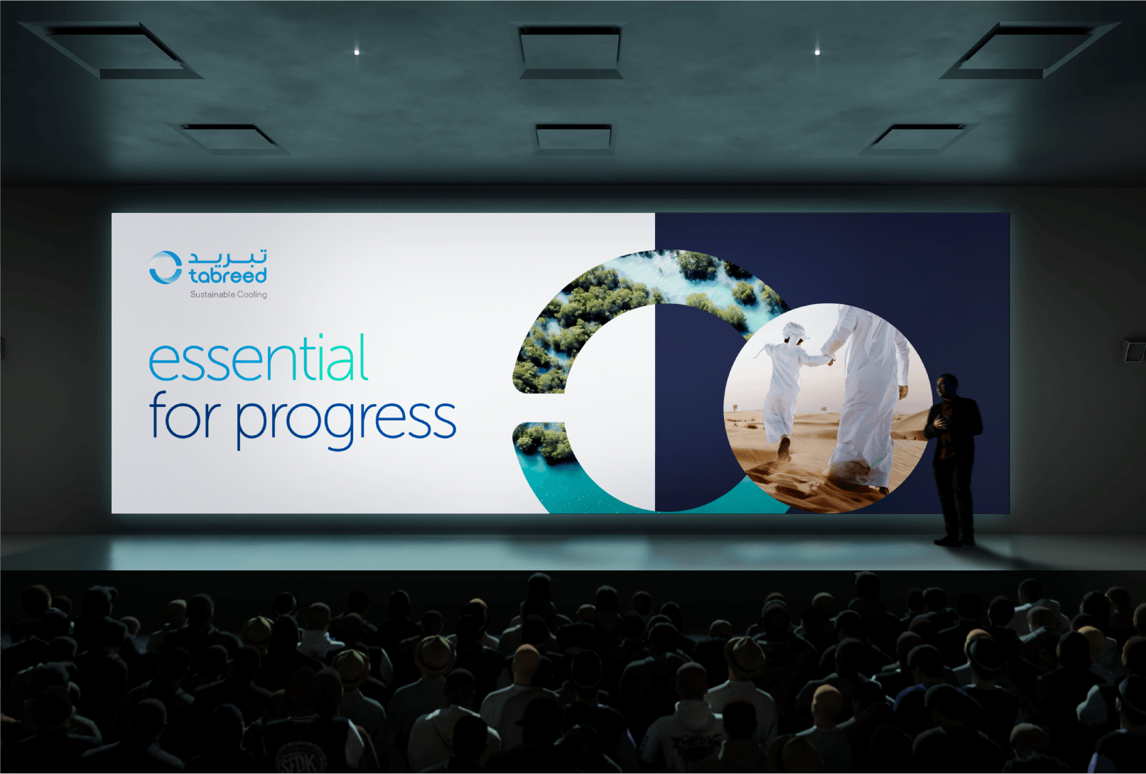 Tabreed needed a brand identity that reflected its pioneering spirit, regional heritage, and future ambitions. The challenge was to update the brand's visual system without losing its core recognition, and to build a flexible, motion-ready framework for modern digital, physical, and experiential environments.